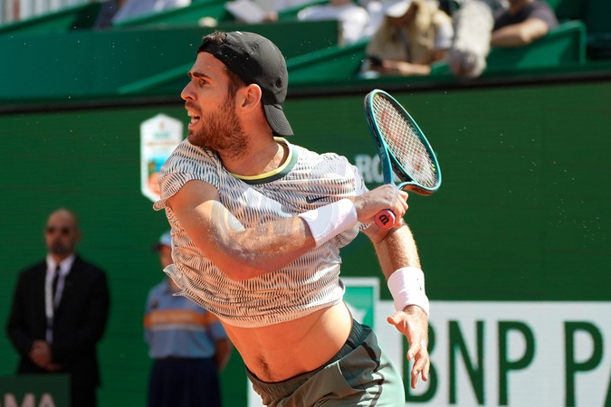 Karen Khachanov (Russie) - 8ème de finale du Rolex Monte-Carlo Masters à Roquebrune-Cap-Martin le 11 avril 2024. © Norbert Scanella / Panoramic / Bestimage 8th final of the Rolex Monte-Carlo Masters in Roquebrune-Cap-Martin on 11 April 2024.