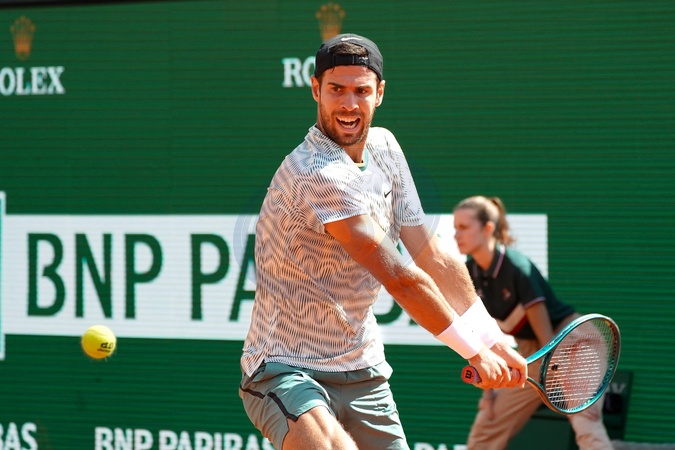 Karen Khachanov (Russie) - 8ème de finale du Rolex Monte-Carlo Masters à Roquebrune-Cap-Martin le 11 avril 2024. © Norbert Scanella / Panoramic / Bestimage 8th final of the Rolex Monte-Carlo Masters in Roquebrune-Cap-Martin on 11 April 2024.