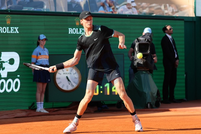 Jannik Sinner en 8ème de finale du Rolex Masters de Monte Carlo à Roquebrune-Cap-Martin le 11 avril 2024. © Claudia Albuquerque / Bestimage 8 of the Monte Carlo Rolex Masters in Roquebrune-Cap-Martin on 11 April 2024