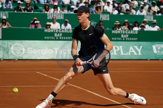 Jannik Sinner (Italie) - J.Sinner bat H.Rune (6-4, 6-7[6], 6-3) et se qualifie pour la demi-finale du Masters 1000 de Monte-Carlo à Roquebrune Cap Martin, le 12 avril 2024. © Norbert Scanella / Panoramic / Bestimage J.Sinner beats H.Rune (6-4, 6-7[6], 6-3) and qualifies for the semi-final of the Masters 1000 of Monte-Carlo in Roquebrune Cap Martin, April 12, 2024.