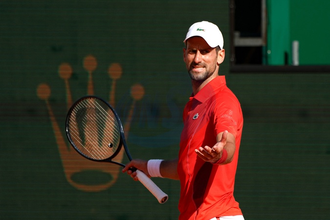 Novak Djokovic (Serbie) - Tennis - Rolex Masters 1000 de Monte-Carlo - N.Djokovic bat A. de Minaur (7/5 - 6/4) le 12 avril 2024. © Norbert Scanella / Panoramic / Bestimage Tennis - Rolex Masters 1000 of Monte-Carlo - N.Djokovic beats A. de Minaur (7/5 - 6/4) on April 12, 2024.