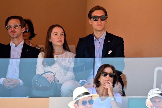 La princesse Alexandra de Hanovre et son compagnon Ben-Sylvester Strautmann durant le Masters 1000 de Monte-Carlo à Roquebrune-Cap-Martin, le 13 avril 2024 pour assister aux demi-finales. © Bruno Bebert / Bestimage People during the Monte-Carlo Masters 1000 in Roquebrune-Cap-Martin on 13 April 2024.