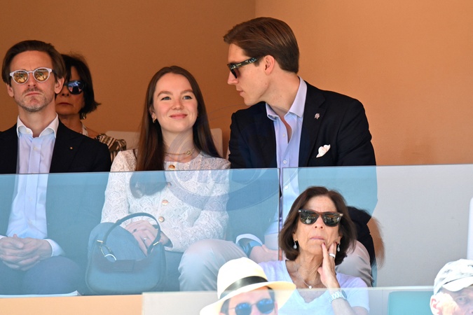 La princesse Alexandra de Hanovre et son compagnon Ben-Sylvester Strautmann durant le Masters 1000 de Monte-Carlo à Roquebrune-Cap-Martin, le 13 avril 2024 pour assister aux demi-finales. © Bruno Bebert / Bestimage People during the Monte-Carlo Masters 1000 in Roquebrune-Cap-Martin on 13 April 2024.