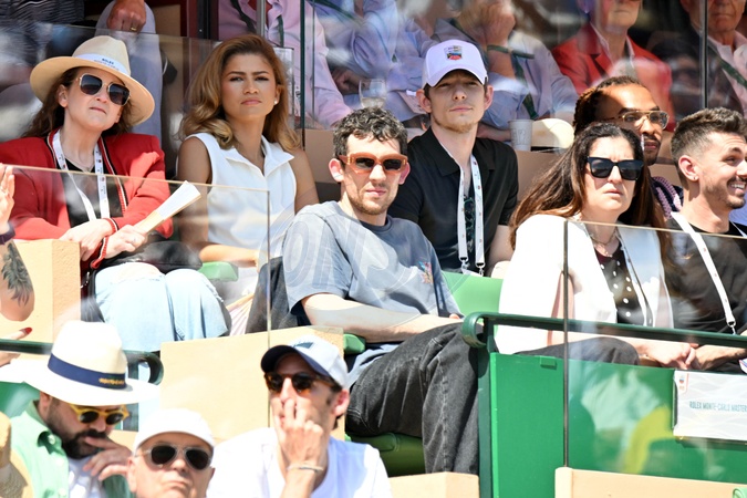 Zendaya, Josh O'Connor et Mike Faist durant le Masters 1000 de Monte-Carlo à Roquebrune-Cap-Martin, le 13 avril 2024 pour assister aux demi-finales. © Bruno Bebert / Bestimage People during the Monte-Carlo Masters 1000 in Roquebrune-Cap-Martin on 13 April 2024.