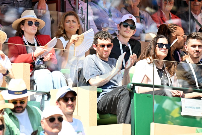 Zendaya, Josh O'Connor et Mike Faist durant le Masters 1000 de Monte-Carlo à Roquebrune-Cap-Martin, le 13 avril 2024 pour assister aux demi-finales. © Bruno Bebert / Bestimage People during the Monte-Carlo Masters 1000 in Roquebrune-Cap-Martin on 13 April 2024.