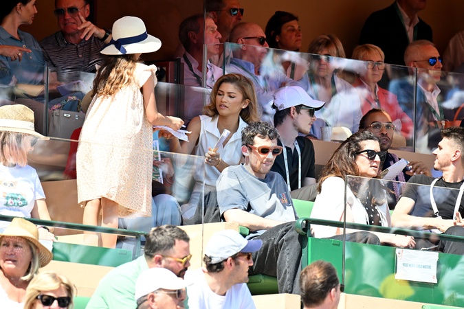 Zendaya, Josh O'Connor et Mike Faist durant le Masters 1000 de Monte-Carlo à Roquebrune-Cap-Martin, le 13 avril 2024 pour assister aux demi-finales. © Bruno Bebert / Bestimage People during the Monte-Carlo Masters 1000 in Roquebrune-Cap-Martin on 13 April 2024.