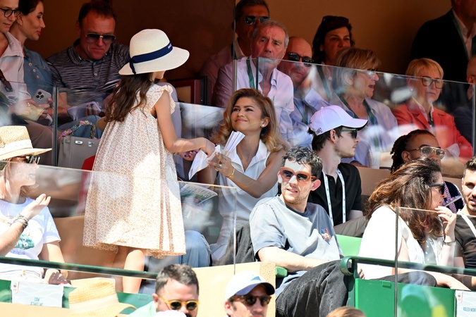 Zendaya, Josh O'Connor et Mike Faist durant le Masters 1000 de Monte-Carlo à Roquebrune-Cap-Martin, le 13 avril 2024 pour assister aux demi-finales. © Bruno Bebert / Bestimage People during the Monte-Carlo Masters 1000 in Roquebrune-Cap-Martin on 13 April 2024.
