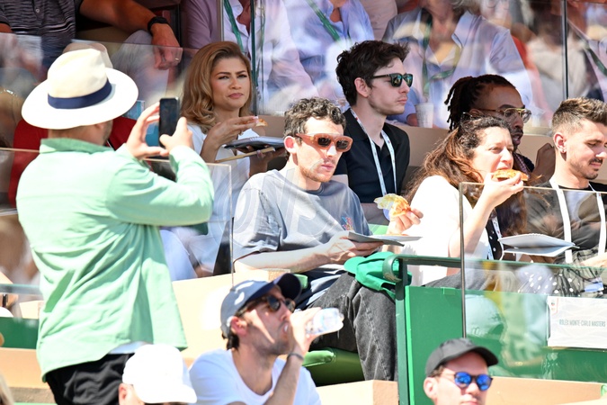 Zendaya, Josh O'Connor et Mike Faist durant le Masters 1000 de Monte-Carlo à Roquebrune-Cap-Martin, le 13 avril 2024 pour assister aux demi-finales. © Bruno Bebert / Bestimage People during the Monte-Carlo Masters 1000 in Roquebrune-Cap-Martin on 13 April 2024.