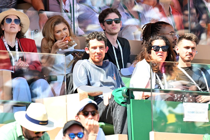 Zendaya, Josh O'Connor et Mike Faist durant le Masters 1000 de Monte-Carlo à Roquebrune-Cap-Martin, le 13 avril 2024 pour assister aux demi-finales. © Bruno Bebert / Bestimage People during the Monte-Carlo Masters 1000 in Roquebrune-Cap-Martin on 13 April 2024.