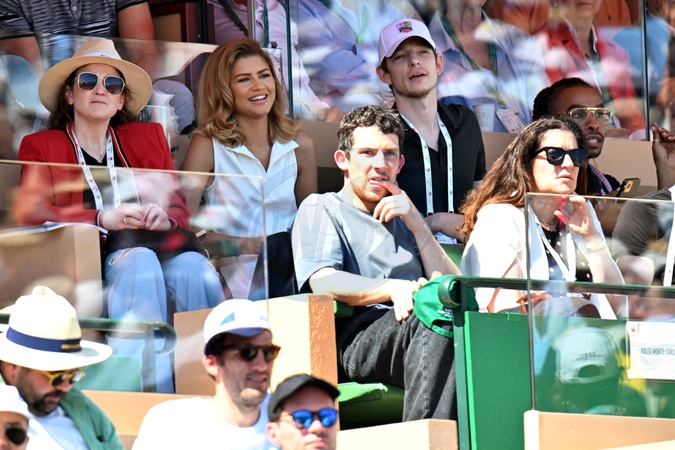 Zendaya, Josh O'Connor et Mike Faist durant le Masters 1000 de Monte-Carlo à Roquebrune-Cap-Martin, le 13 avril 2024 pour assister aux demi-finales. © Bruno Bebert / Bestimage People during the Monte-Carlo Masters 1000 in Roquebrune-Cap-Martin on 13 April 2024.