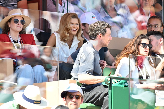 Zendaya, Josh O'Connor et Mike Faist durant le Masters 1000 de Monte-Carlo à Roquebrune-Cap-Martin, le 13 avril 2024 pour assister aux demi-finales. © Bruno Bebert / Bestimage People during the Monte-Carlo Masters 1000 in Roquebrune-Cap-Martin on 13 April 2024.