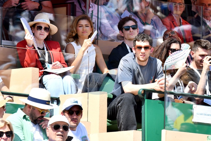 Zendaya, Josh O'Connor et Mike Faist durant le Masters 1000 de Monte-Carlo à Roquebrune-Cap-Martin, le 13 avril 2024 pour assister aux demi-finales. © Bruno Bebert / Bestimage People during the Monte-Carlo Masters 1000 in Roquebrune-Cap-Martin on 13 April 2024.