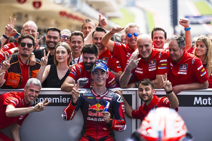 Grand Prix des Amériques 2024 de MotoGP à Austin le 12 avril 2024 - ACOSTA Pedro (spa), Tech3 GasGas Factory Racing, GasGas RC16, portrait, celebrating his first row during the 2024 MotoGP Red Bull Grand Prix of The Americas on Circuit Of The Americas from April 12 22 to 14, in Austin, United States -
