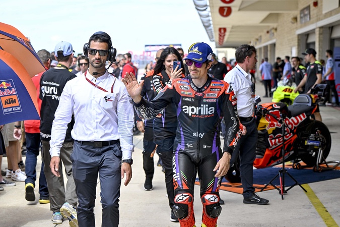 Grand Prix des Amériques 2024 de MotoGP à Austin le 12 avril 2024 - VINALES Maverick (spa), Aprilia Racing Team Gresini, Aprilia RS-GP 2024, portrait, celebrating his pole position during the 2024 MotoGP Red Bull Grand Prix of The Americas on Circuit Of The Americas from April 12 22 to 14, in Austin, United States -