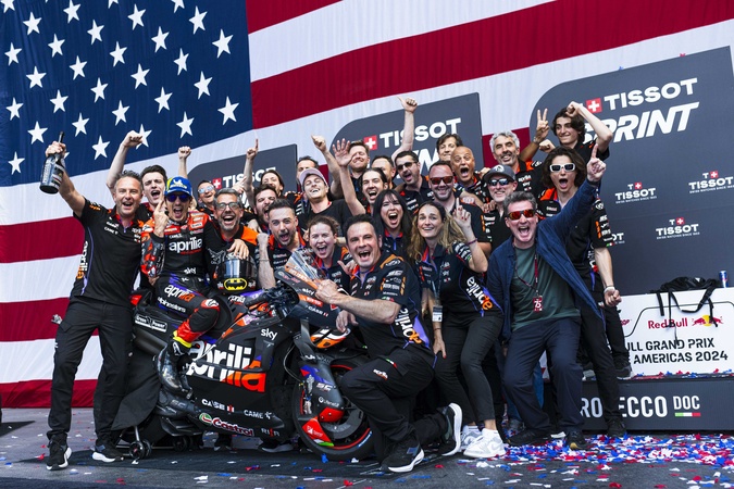 Grand Prix des Amériques 2024 de MotoGP à Austin le 12 avril 2024 - VINALES Maverick (spa), Aprilia Racing Team Gresini, Aprilia RS-GP 2024, portrait celebrating his win in Race sprint during the 2024 MotoGP Red Bull Grand Prix of The Americas on Circuit Of The Americas from April 12 22 to 14, in Austin, United States -