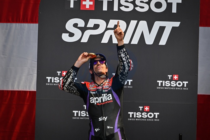 Grand Prix des Amériques 2024 de MotoGP à Austin le 12 avril 2024 - VINALES Maverick (spa), Aprilia Racing Team Gresini, Aprilia RS-GP 2024, portrait celebrating his win in Race sprint during the 2024 MotoGP Red Bull Grand Prix of The Americas on Circuit Of The Americas from April 12 22 to 14, in Austin, United States -
