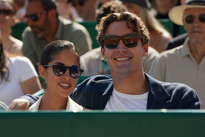 George Russell et sa compagne - Tennis - Rolex Masters 1000 de Monte-Carlo à Roquebrune Cap Martin - Stefanos Tsitsipas bat Jannik Sinner et atteint la finale le 13 avril 2024. © Norbert Scanella / Panoramic / Bestimage Tennis - Rolex Masters 1000 from Monte-Carlo to Roquebrune Cap Martin - Stefanos Tsitsipas beats Jannik Sinner and reaches the final