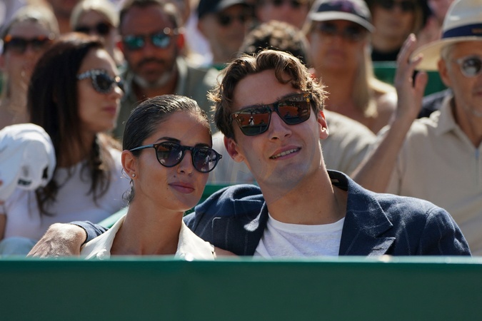 George Russell et sa compagne - Tennis - Rolex Masters 1000 de Monte-Carlo à Roquebrune Cap Martin - Stefanos Tsitsipas bat Jannik Sinner et atteint la finale le 13 avril 2024. © Norbert Scanella / Panoramic / Bestimage Tennis - Rolex Masters 1000 from Monte-Carlo to Roquebrune Cap Martin - Stefanos Tsitsipas beats Jannik Sinner and reaches the final