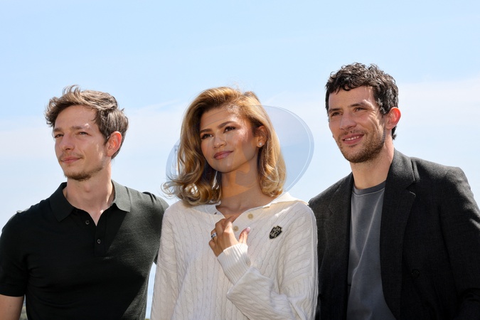 Mike Faist, Zendaya, Josh O'Connor - L'équipe du film Challengers pose au Masters 1000 de Monte-Carlo à Roquebrune-Cap-Martin le 13 avril 2024 © Claudia Albuquerque / Bestimage The Challengers film crew pose at the Monte-Carlo Masters 1000 in Roquebrune-Cap-Martin on 13 April 2024