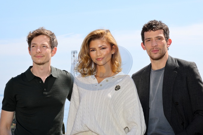 Mike Faist, Zendaya, Josh O'Connor - L'équipe du film Challengers pose au Masters 1000 de Monte-Carlo à Roquebrune-Cap-Martin le 13 avril 2024 © Claudia Albuquerque / Bestimage The Challengers film crew pose at the Monte-Carlo Masters 1000 in Roquebrune-Cap-Martin on 13 April 2024