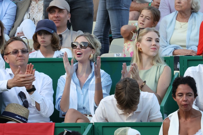 Les princesses Maria Chiara et Maria Carolina de Bourbon des Deux-Siciles en tribune lors du Rolex Masters 1000 de Monte-Carlo à Roquebrune-Cap-Martin le 13 avril 2024. © Claudia Albuquerque / Bestimage Celebs at Rolex Masters 1000 de Monte-Carlo in Roquebrune-Cap-Martin on 13 April 2024.