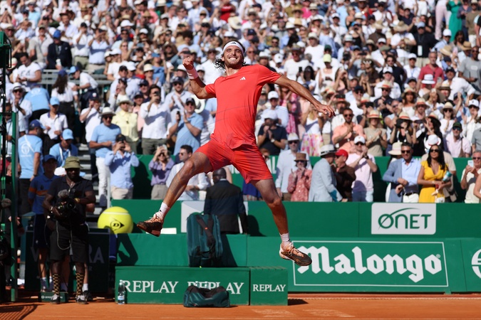 Stéfanos Tsitsipas cieszy sie po wygraniu Masters 1000 de Monte-Carlo à Roquebrune-Cap-Martin