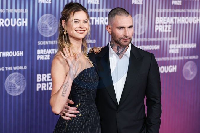 LOS ANGELES, CALIFORNIA, USA - APRIL 13: Behati Prinsloo and husband Adam Levine arrive at the 10th Annual Breakthrough Prize Ceremony held at the Academy Museum of Motion Pictures on April 13, 2024 in Los Angeles, California, United States., Credit:Xavier Collin / Avalon