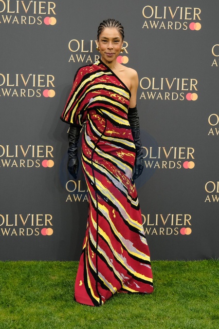 Sophie Okoneda photographed arriving at the Olivier Awards 2024 with Mastercard held at The Royal Albert Hall in London, UK on 14 April 2024., Credit:Julie Edwards / Avalon