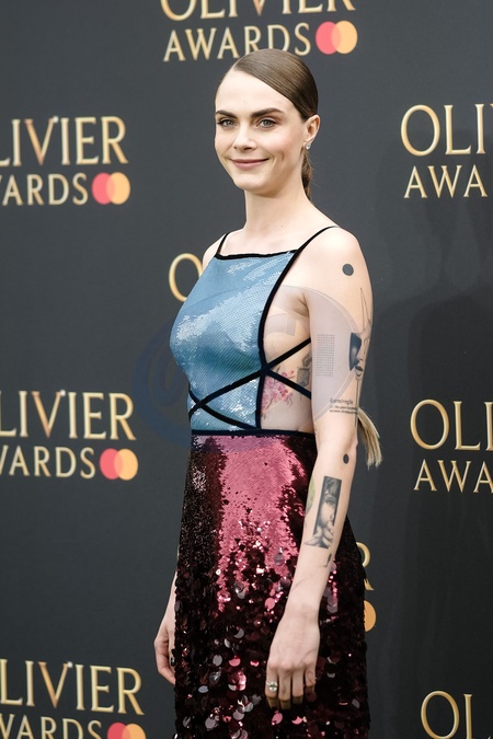 Cara Delevingne photographed arriving at the Olivier Awards 2024 with Mastercard held at The Royal Albert Hall in London, UK on 14 April 2024., Credit:Julie Edwards / Avalon