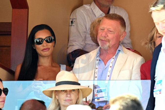 Boris Becker, l'ancien chammpion de tennis, et sa compagne Lilian de Carvahlo Monteiro lors de la finale du Rolex Masters 1000 de Monte-Carlo à Roquebrune-Cap-Martin le 14 avril 2024. © Bruno Bebert / Bestimage Celebs watch the final of the Monte Carlo Rolex Masters 1000 in Roquebrune-Cap-Martin on 14 April 2024.