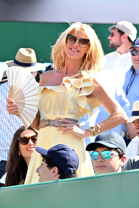 Victoria Silvstedt lors de la finale du Rolex Masters 1000 de Monte-Carlo à Roquebrune-Cap-Martin le 14 avril 2024. © Bruno Bebert / Bestimage Celebs watch the final of the Monte Carlo Rolex Masters 1000 in Roquebrune-Cap-Martin on 14 April 2024.