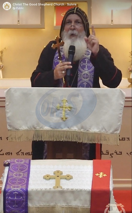 Un évêque et trois fidèles agressés lors d'une attaque au couteau à l'Eglise Christ The Good Shepherd à Wakeley près de Sydney, le 15 avril 2024. Un homme vêtu de noir s'est approché de l'autel et aurait poignardé à plusieurs reprises l'évêque Mar Mari Emmanuel. Des images horribles de l'incident, diffusées en direct sur la page YouTube de l'église, montrent Mgr Emmanuel lever les yeux avec étonnement alors que l'agresseur lui donne soudainement des coups au visage et à la tête. L'agresseur a été arrêté par la police. Une autre attaque au couteau avait fait six morts dans un centre commercial à Sydney, deux jours auparavant. © Facebook via Bestimage A bishop and three worshipers attacked in a stabbing attack at Christ the Good Shepherd Church in Wakeley near Sydney on April 15, 2024. A man dressed in black approached the altar and allegedly stabbed several resumed Bishop Mar Mari Emmanuel. Horrific footage of the incident, broadcast live on the church's YouTube page, shows Bishop Emmanuel looking up in astonishment as the attacker suddenly punches him in the face and head. The attacker was arrested by the police. Another knife attack left six people dead in a shopping center in Sydney two days earlier.