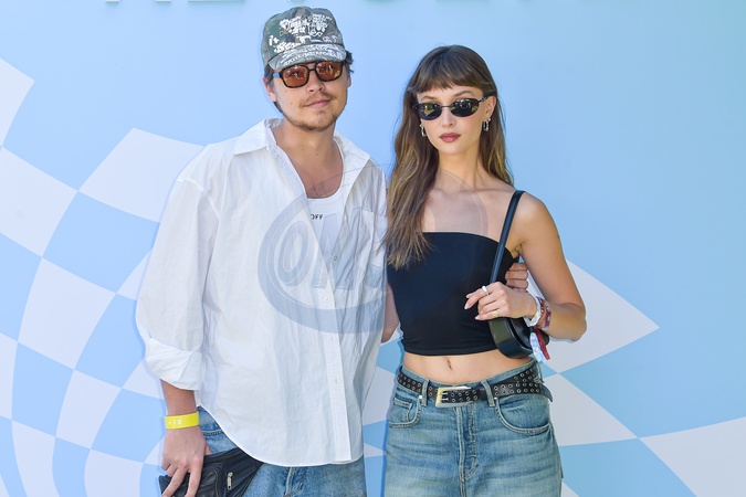 PALM SPRINGS, RIVERSIDE COUNTY, CALIFORNIA, USA - APRIL 13: Cole Sprouse and girlfriend Ari Fournier arrive at the 7th Annual REVOLVE Festival 2024 during the 2024 Coachella Valley Music And Arts Festival - Weekend 1 - Day 2 held at the Parker Palm Springs Hotel on April 13, 2024 in Palm Springs, Riverside County, California, United States., Credit:Image Press Agency / Avalon