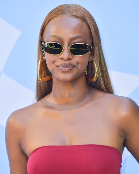 PALM SPRINGS, RIVERSIDE COUNTY, CALIFORNIA, USA - APRIL 13: Justine Skye arrives at the 7th Annual REVOLVE Festival 2024 during the 2024 Coachella Valley Music And Arts Festival - Weekend 1 - Day 2 held at the Parker Palm Springs Hotel on April 13, 2024 in Palm Springs, Riverside County, California, United States., Credit:Image Press Agency / Avalon