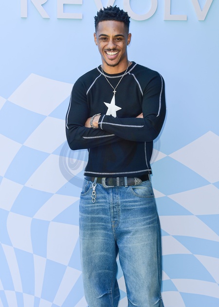 PALM SPRINGS, RIVERSIDE COUNTY, CALIFORNIA, USA - APRIL 13: Keith Powers arrives at the 7th Annual REVOLVE Festival 2024 during the 2024 Coachella Valley Music And Arts Festival - Weekend 1 - Day 2 held at the Parker Palm Springs Hotel on April 13, 2024 in Palm Springs, Riverside County, California, United States., Credit:Image Press Agency / Avalon