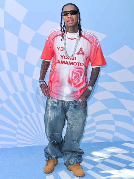PALM SPRINGS, RIVERSIDE COUNTY, CALIFORNIA, USA - APRIL 13: Tyga arrives at the 7th Annual REVOLVE Festival 2024 during the 2024 Coachella Valley Music And Arts Festival - Weekend 1 - Day 2 held at the Parker Palm Springs Hotel on April 13, 2024 in Palm Springs, Riverside County, California, United States., Credit:Image Press Agency / Avalon
