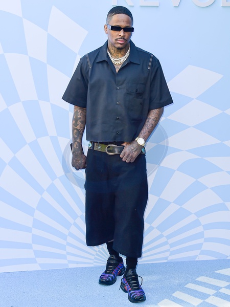 PALM SPRINGS, RIVERSIDE COUNTY, CALIFORNIA, USA - APRIL 13: YG arrives at the 7th Annual REVOLVE Festival 2024 during the 2024 Coachella Valley Music And Arts Festival - Weekend 1 - Day 2 held at the Parker Palm Springs Hotel on April 13, 2024 in Palm Springs, Riverside County, California, United States., Credit:Image Press Agency / Avalon