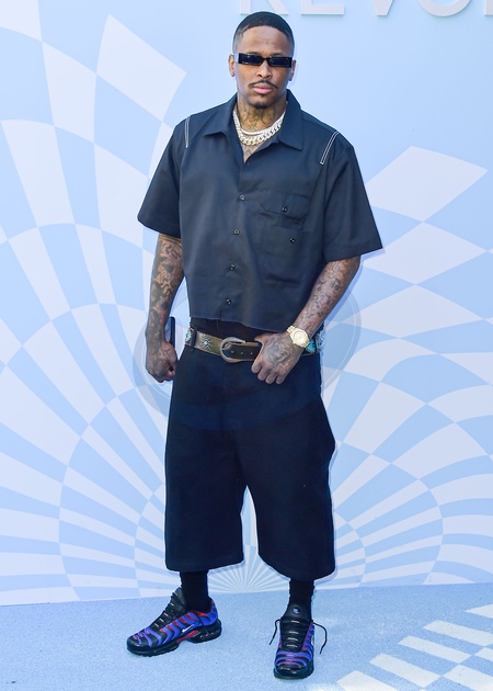 PALM SPRINGS, RIVERSIDE COUNTY, CALIFORNIA, USA - APRIL 13: YG arrives at the 7th Annual REVOLVE Festival 2024 during the 2024 Coachella Valley Music And Arts Festival - Weekend 1 - Day 2 held at the Parker Palm Springs Hotel on April 13, 2024 in Palm Springs, Riverside County, California, United States., Credit:Image Press Agency / Avalon