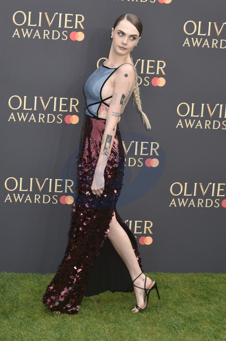Cara Delevingne at The Olivier Awards 2024 with Mastercard at the Royal Albert Hall, Kensington Gore, South Kensington, London SW7 2AP on Sunday 14th April 2024., Credit:Sue Andrews / Avalon