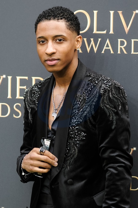 Myles Frost photographed arriving at the Olivier Awards 2024 with Mastercard at The Royal Albert Hall, London, UK on 14 April 2024 ., Credit:Julie Edwards / Avalon