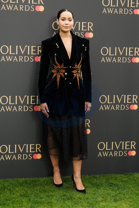 Madeleine Mantock photographed arriving at the Olivier Awards 2024 with Mastercard at The Royal Albert Hall, London, UK on 14 April 2024 ., Credit:Julie Edwards / Avalon