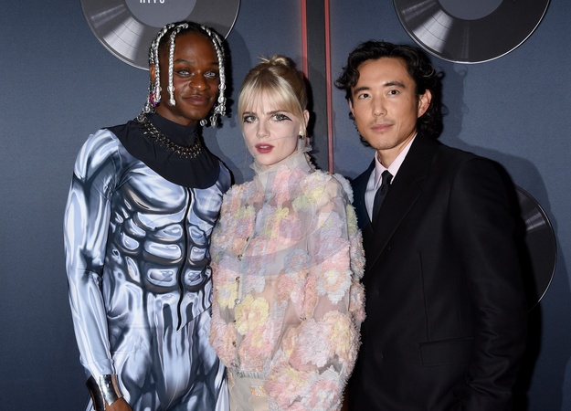 Austin Crute, Lucy Boynton and Justin H. Min arriving at Searchlight Pictures' "The Greatest Hits” Los Angeles Premiere held at the El Capitan Theatre in Los Angeles, CA on April 15, 2024. © Janet Gough / AFF-USA.COM
