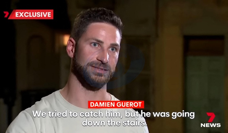 Damien Guerot surnommé "Bollard man" (l'homme au poteau) - Damien Guerot surnommé "Bollard man" (l'homme au poteau) et son ami Silas Despreaux, les 2 héros français, qui ont combattu l'assaillant au couteau du centre commercial Westfield de Bondi Junction, Sydney. Ce dernier a tué 6 personnes et bléssés 8 autres avant d'être tué par la police. Le premier ministre australien a déclaré que Damien Guerot dont le visa de travail allait se terminer allait recevoir la citoyenneté australienne pour son acte de bravoure. © Channel Seven News via Bestimage Damien Guerot nicknamed "Bollard man" and his friend Silas Despreaux, the 2 French heroes, who fought the knife attacker at the Westfield shopping center in Bondi Junction, Sydney. The latter killed 6 people and injured 8 others before being killed by the police. The Australian Prime Minister declared that Damien Guerot, whose work visa was about to end, would receive Australian citizenship for his act of bravery.