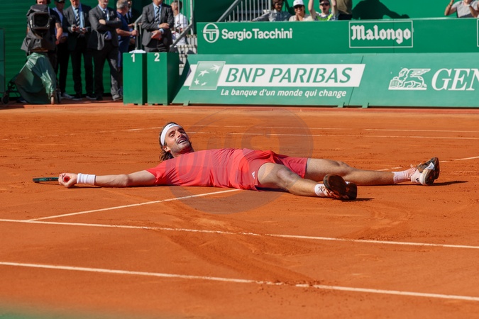 Stéfanos Tsitsipás remporte la finale du Rolex Masters 1000 de Monte-Carlo à Roquebrune-Cap-Martin le 14 avril 2024. © Claudia Albuquerque/Bestimage Stéfanos Tsitsipás wins the final of the Monte-Carlo Rolex Masters 1000 in Roquebrune-Cap-Martin, France, on 14 April 2024.