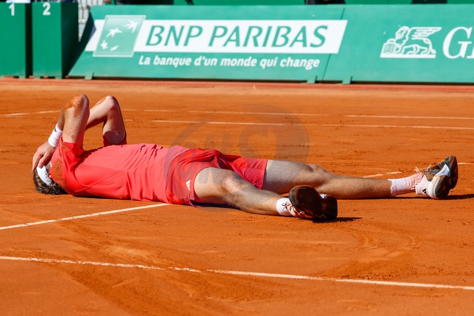 Stéfanos Tsitsipás remporte la finale du Rolex Masters 1000 de Monte-Carlo à Roquebrune-Cap-Martin le 14 avril 2024. © Claudia Albuquerque/Bestimage Stéfanos Tsitsipás wins the final of the Monte-Carlo Rolex Masters 1000 in Roquebrune-Cap-Martin, France, on 14 April 2024.