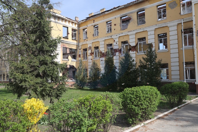 KHARKIV, UKRAINE - APRIL 13, 2024 - A school shows damage caused by Russian shelling, Kharkiv, northeastern Ukraine., Credit:Vyacheslav Madiyevskyy / Avalon