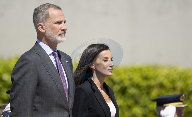 Hiszpański król Felipe i królowa Letycja przybywają na lotnisko Barajas w Madrycie