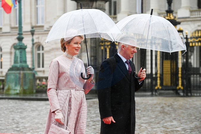 La reine Mathilde de Belgique, le roi Philippe de Belgique - Le grand-duc Henri de Luxembourg et la grand duchesse Maria Teresa sont en visite d'état à Bruxelles le 16 avril 2024. © Frédéric Andrieu / Bestimage Belgium, Brussels, 16 april 2024 State visit from Luxembourg to Belgium. Grand Duke Henri and his wife Grand Duchess Maria-Teresa Place des Palais for the official welcome by King Philippe and Queen Mathilde. © F.Andrieu / Agencepeps