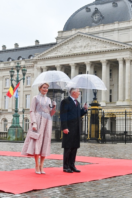 La reine Mathilde de Belgique, le roi Philippe de Belgique - Le grand-duc Henri de Luxembourg et la grand duchesse Maria Teresa sont en visite d'état à Bruxelles le 16 avril 2024. © Frédéric Andrieu / Bestimage Belgium, Brussels, 16 april 2024 State visit from Luxembourg to Belgium. Grand Duke Henri and his wife Grand Duchess Maria-Teresa Place des Palais for the official welcome by King Philippe and Queen Mathilde. © F.Andrieu / Agencepeps