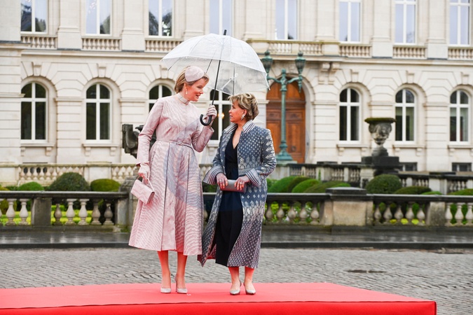 La reine Mathilde de Belgique, la grande-duchesse Maria Teresa de Luxembourg - Le grand-duc Henri de Luxembourg et la grand duchesse Maria Teresa sont en visite d'état à Bruxelles le 16 avril 2024. © Frédéric Andrieu / Bestimage Belgium, Brussels, 16 april 2024 State visit from Luxembourg to Belgium. Grand Duke Henri and his wife Grand Duchess Maria-Teresa Place des Palais for the official welcome by King Philippe and Queen Mathilde. © F.Andrieu / Agencepeps